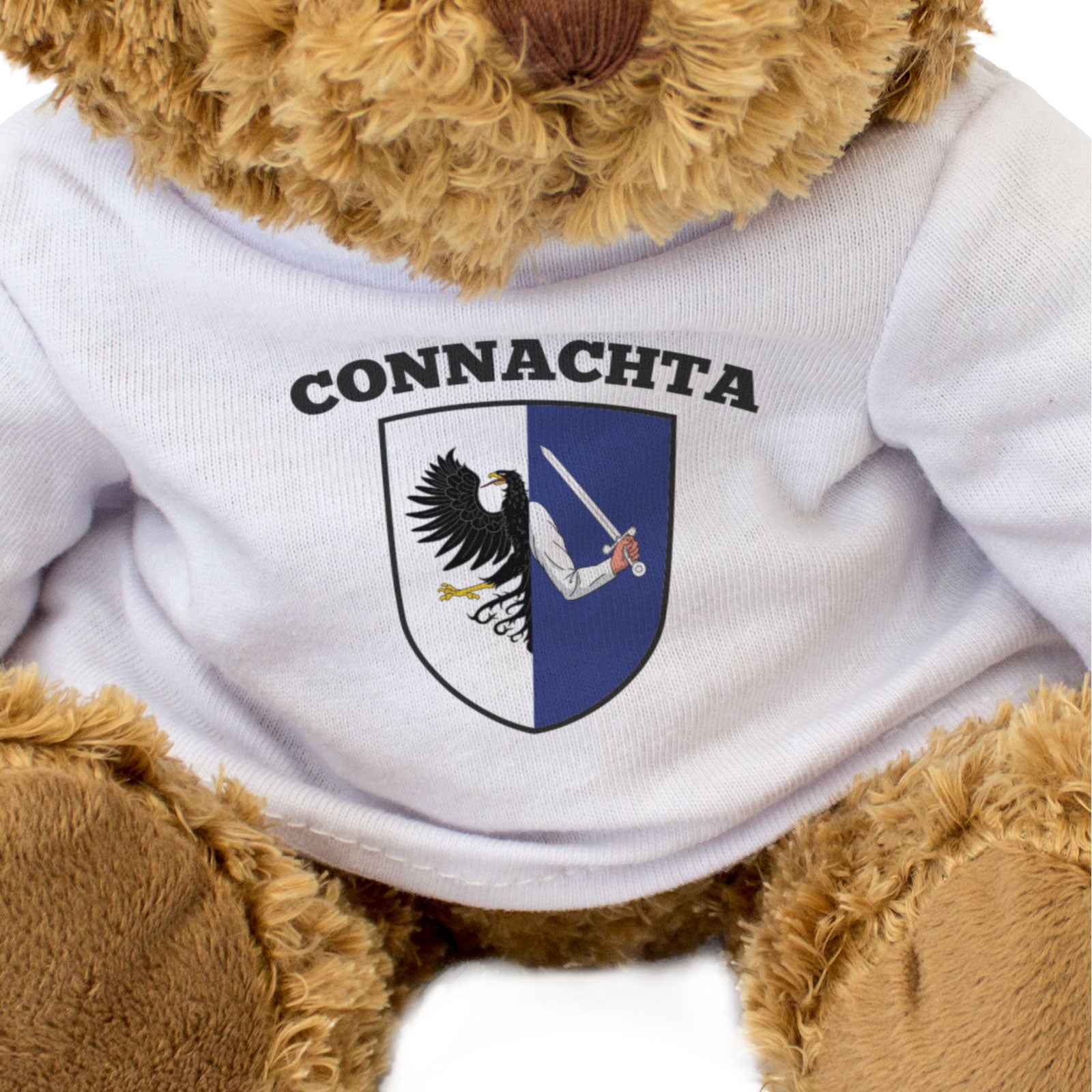 Our bear wears a white t-shirt with the flag of Connachta (Connacht) printed on it in full colour. This bear makes a thoughtful and personal gift for friends and family.