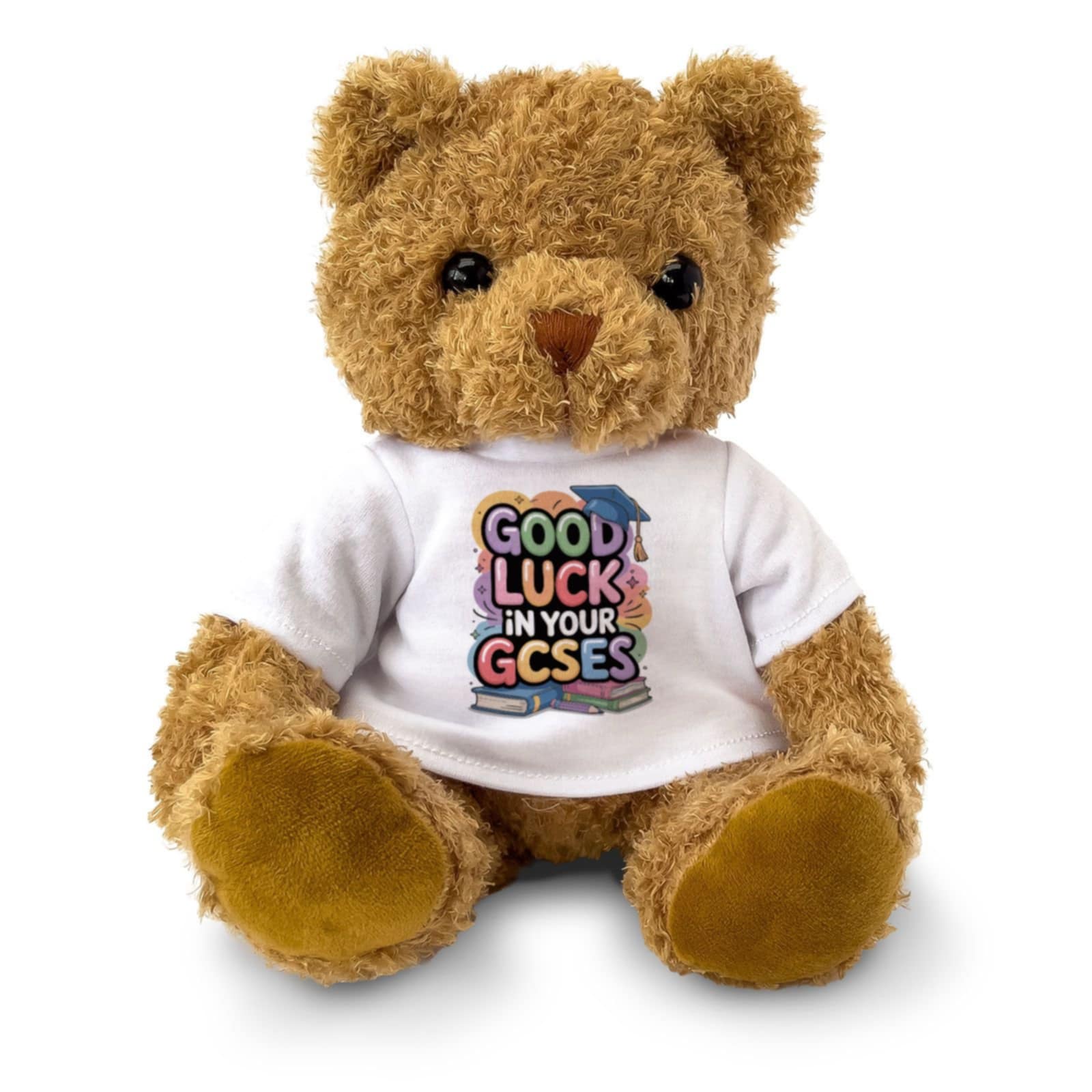 Our bear wears a white t-shirt with Good Luck In Your GCSEs printed on it in full colour. This bear makes a thoughtful and personal gift for friends and family.