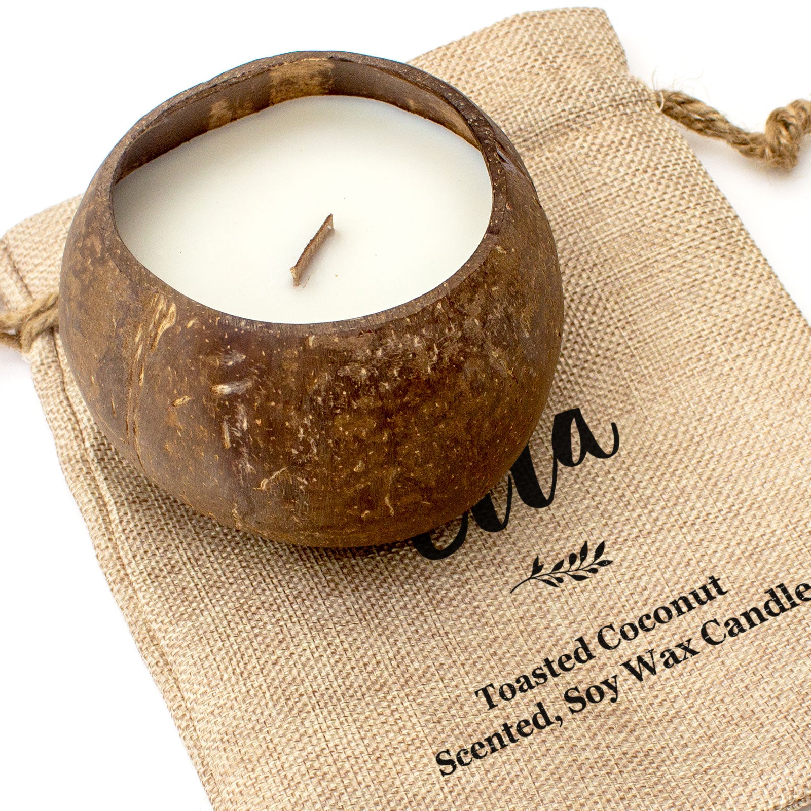 Our natural coconut candle is fragranced with a delectable toasted coconut scent which will fill your home with a heavenly aroma evocative of warm sunny holidays. Each natural coconut shell contains a hand-poured scented soy wax candle with a wooden wick.