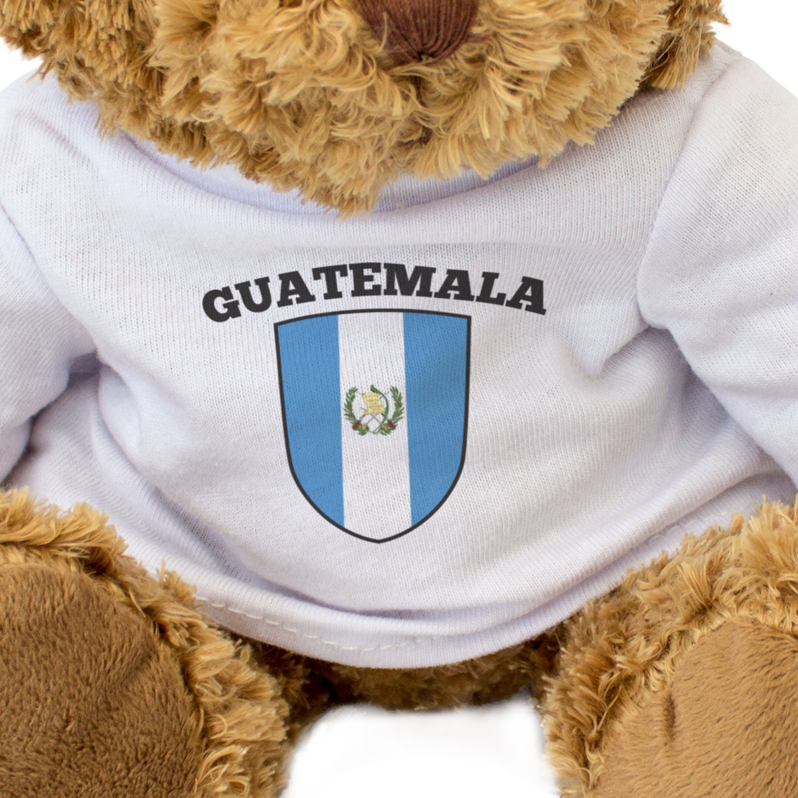 Our bear wears a white t-shirt with the Guatemala Flag printed on it in full colour. This teddy bear makes a thoughtful and personal gift for friends and family.