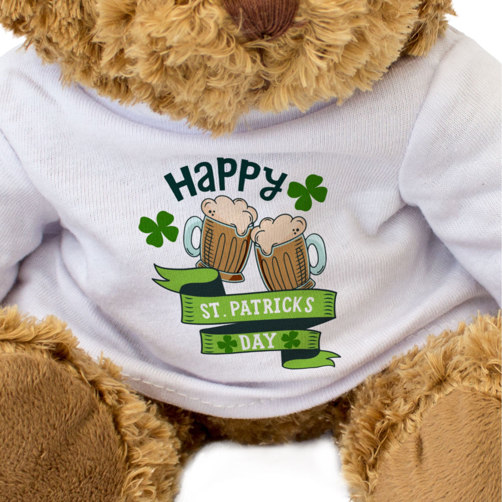Our bear wears a white t-shirt with Happy Saint Patrick's Day printed on it in full colour. This bear makes a thoughtful and personal gift for friends and family.