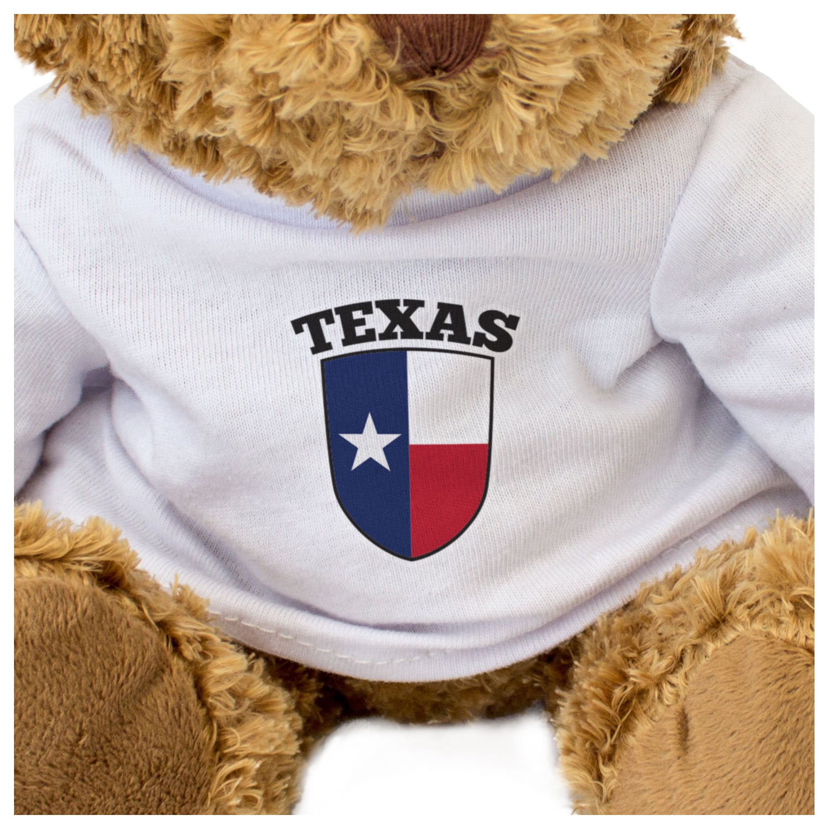 Our bear wears a white t-shirt with the Texas Flag printed on it in full colour. This teddy bear makes a thoughtful and personal gift for friends and family.