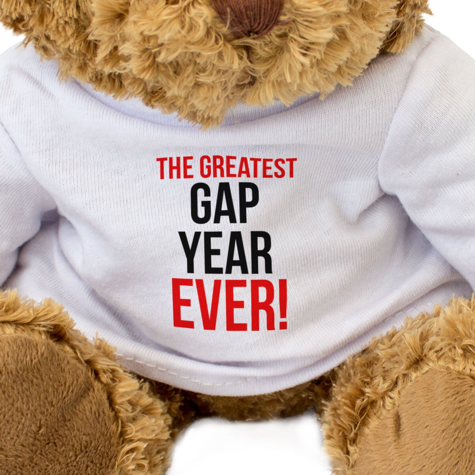 Our bear wears a white t-shirt with The Greatest Gap Year Ever printed on it in full colour. This teddy bear makes a thoughtful and personal gift for friends and family.