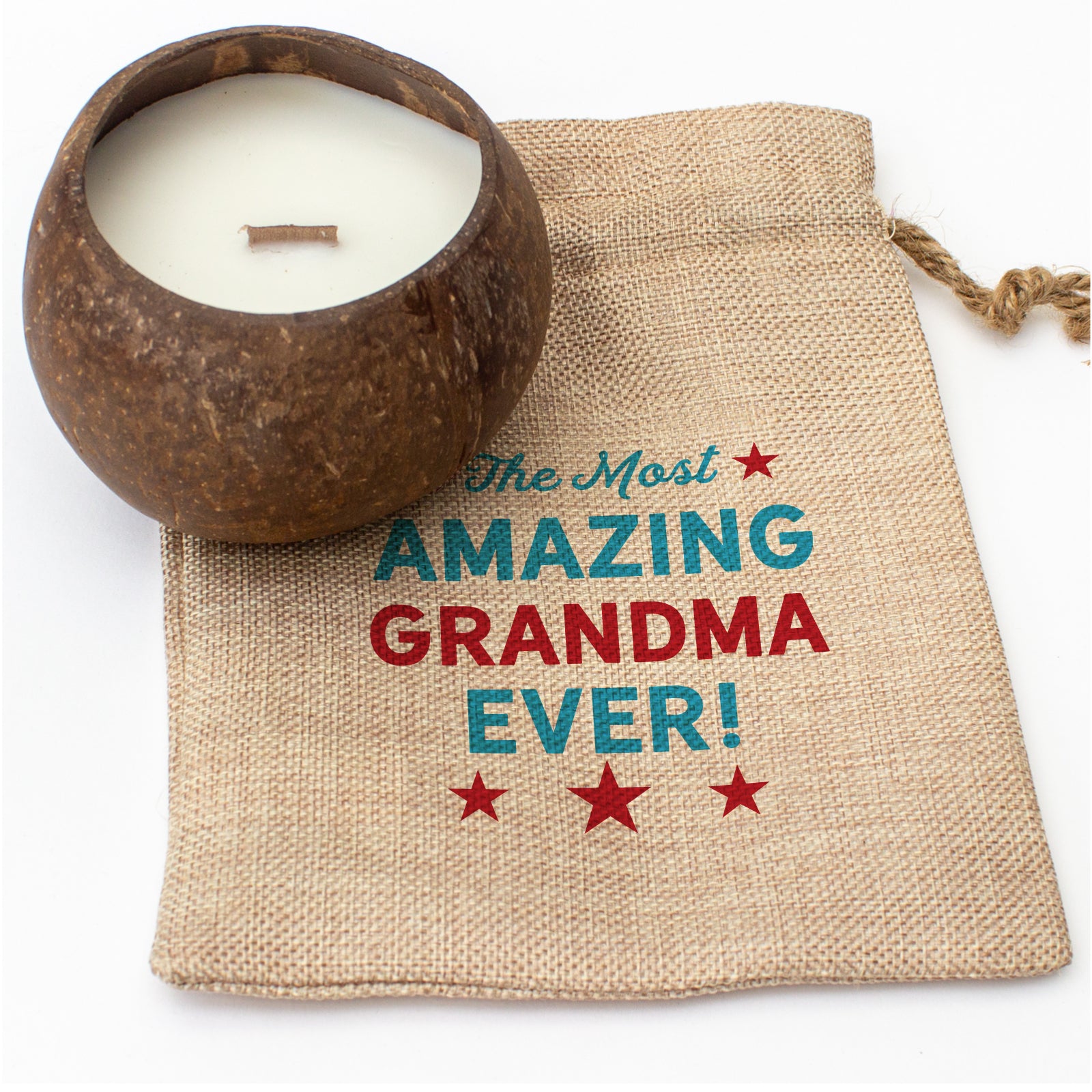 This luxury candle comes with The Most Amazing Grandma Ever printed on the draw-string bag.