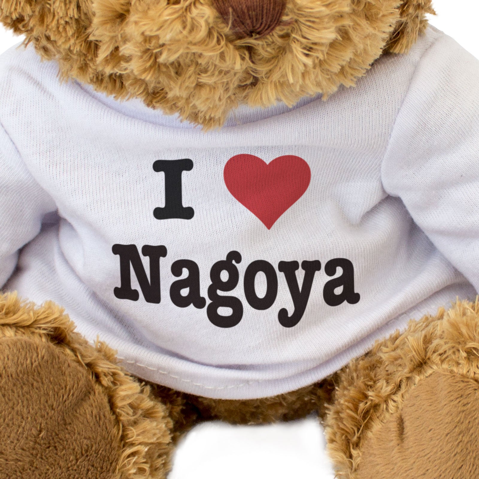 Our bear wears a white t-shirt with the I Love Nagoya printed on it in full colour. This teddy bear makes a thoughtful and personal gift for friends and family.