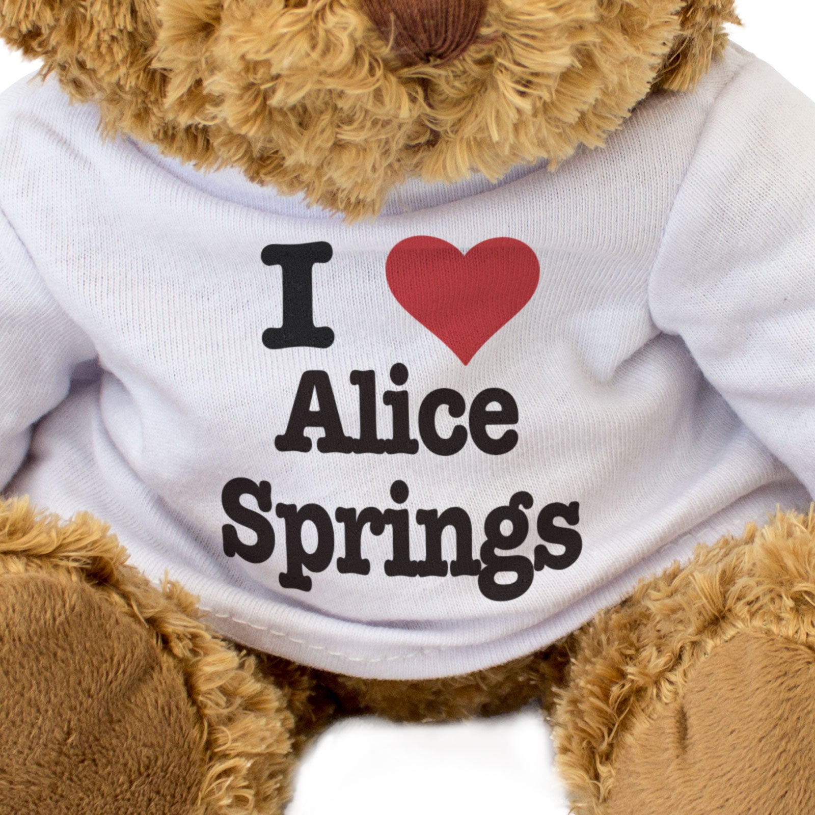 Our bear wears a white t-shirt with I Love Alice Springs printed on it in full colour. This teddy bear makes a thoughtful and personal gift for friends and family.