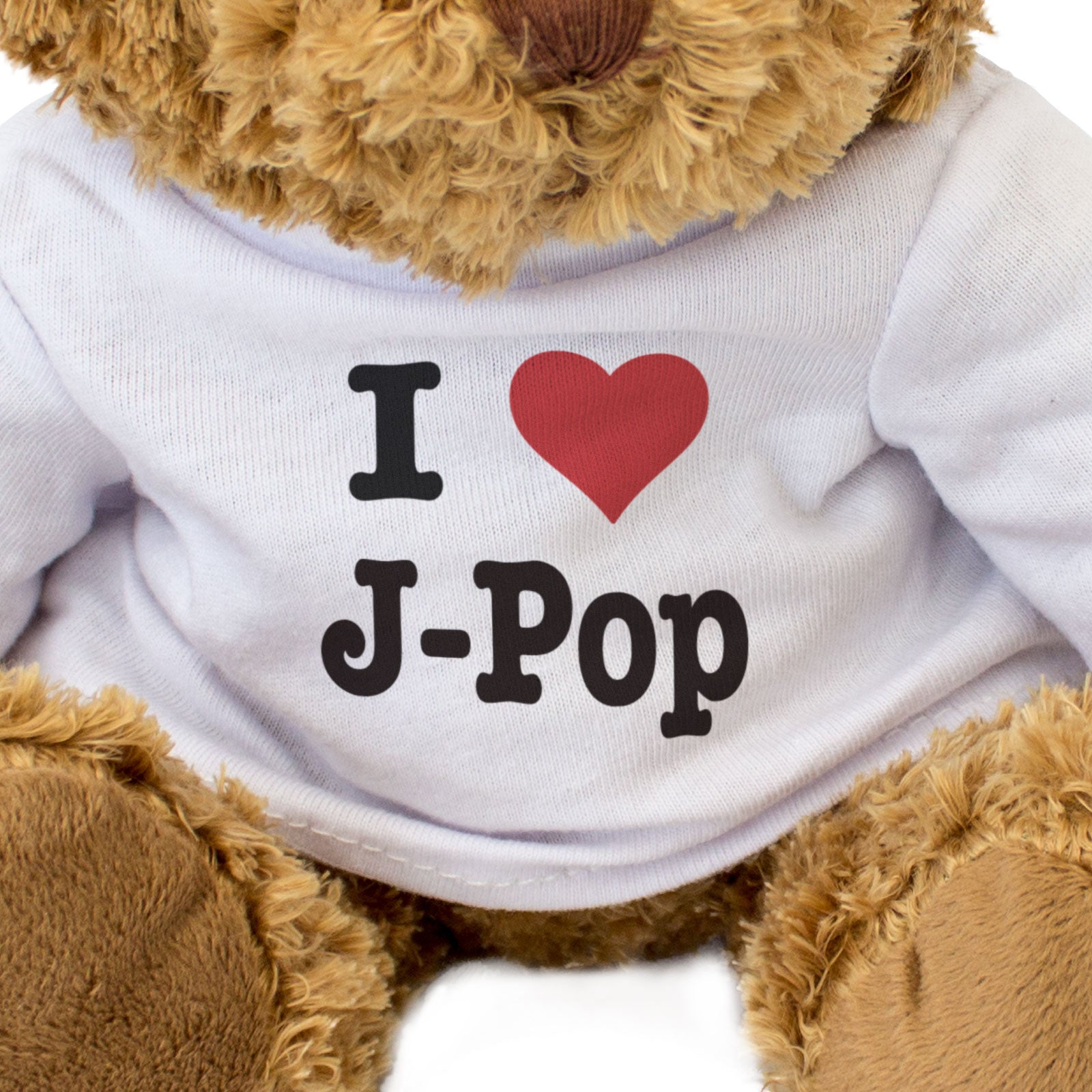 Our bear wears a white t-shirt with the I Love J-Pop printed on it in full colour. This teddy bear makes a thoughtful and personal gift for friends and family.