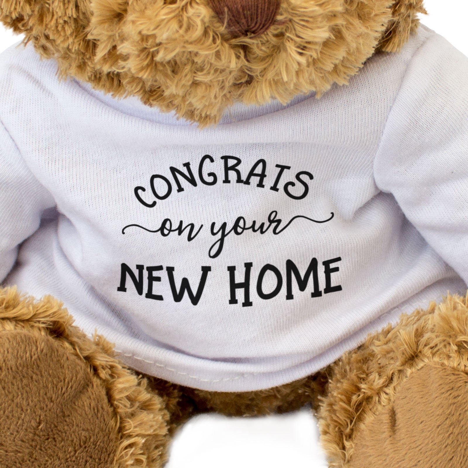 Our bear wears a white t-shirt with the Congrats On Your New Home printed on it in full colour. This teddy bear makes a thoughtful and personal gift for friends and family.