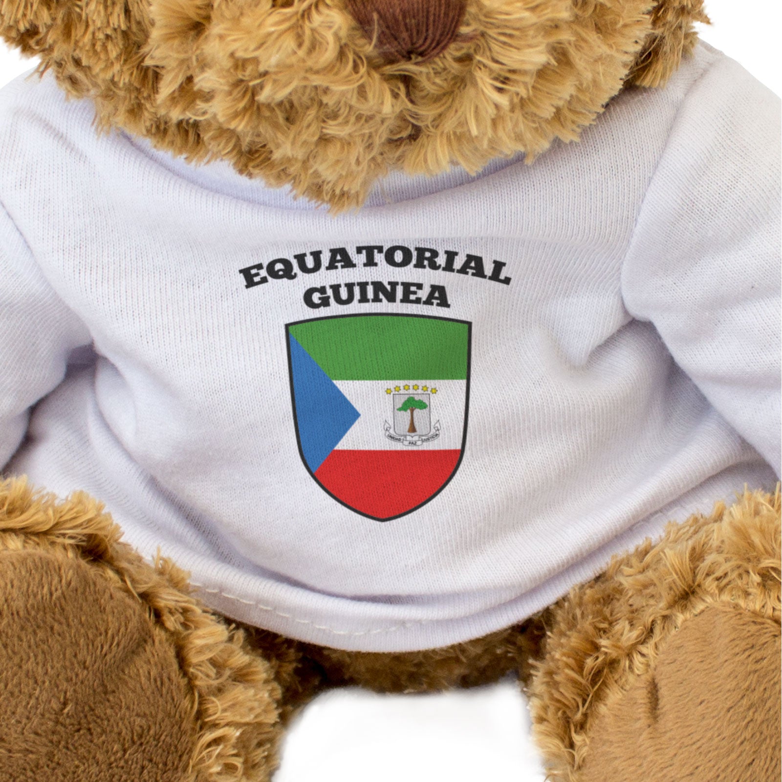 Our bear wears a white t-shirt with the flag of Equatorial Guinea printed on it in full colour. This bear makes a thoughtful and personal gift for friends and family.