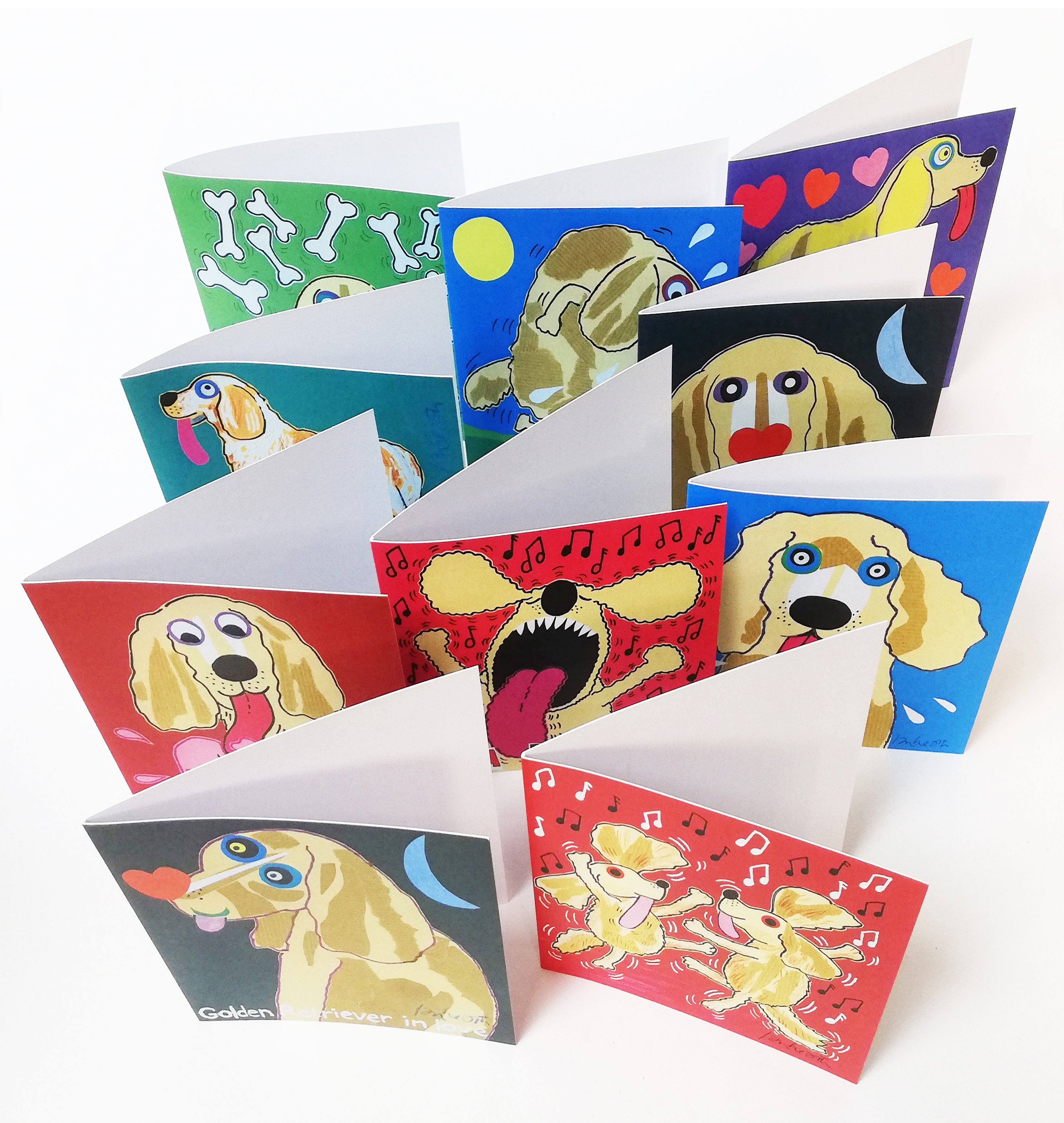 So to celebrate our love of golden retriever dogs, this unique set of greeting cards depicts 10 funny doggie scenarios.
