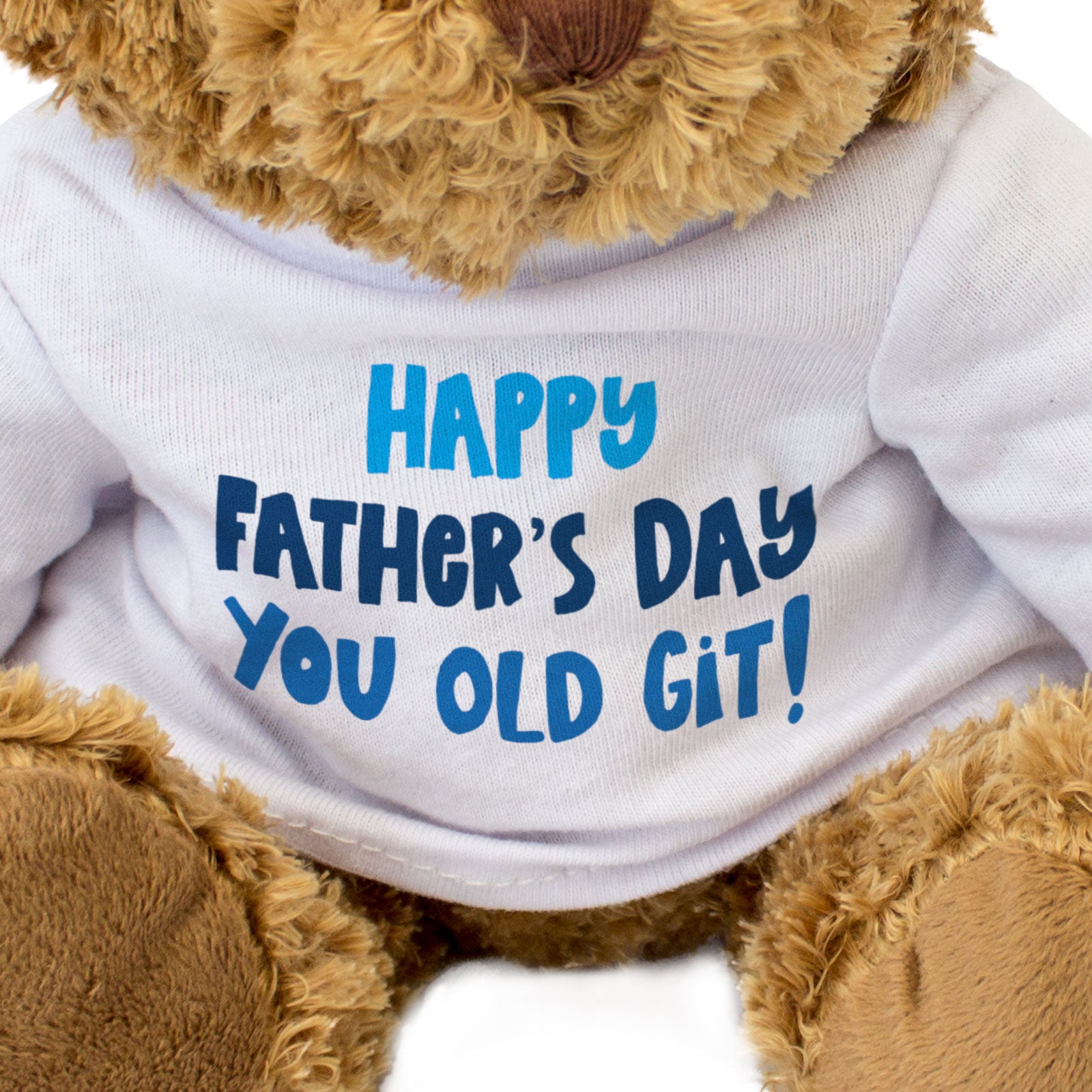 Our bear wears a white t-shirt with Happy Father's Day You Old Git printed on it in full colour. This bear makes a thoughtful and personal gift for family members and friends.
