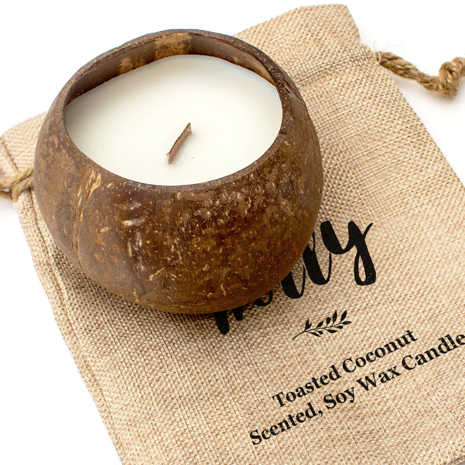 Our natural coconut candle is fragranced with a delectable toasted coconut scent which will fill your home with a heavenly aroma evocative of warm sunny holidays. Each natural coconut shell contains a hand-poured scented soy wax candle with a wooden wick.