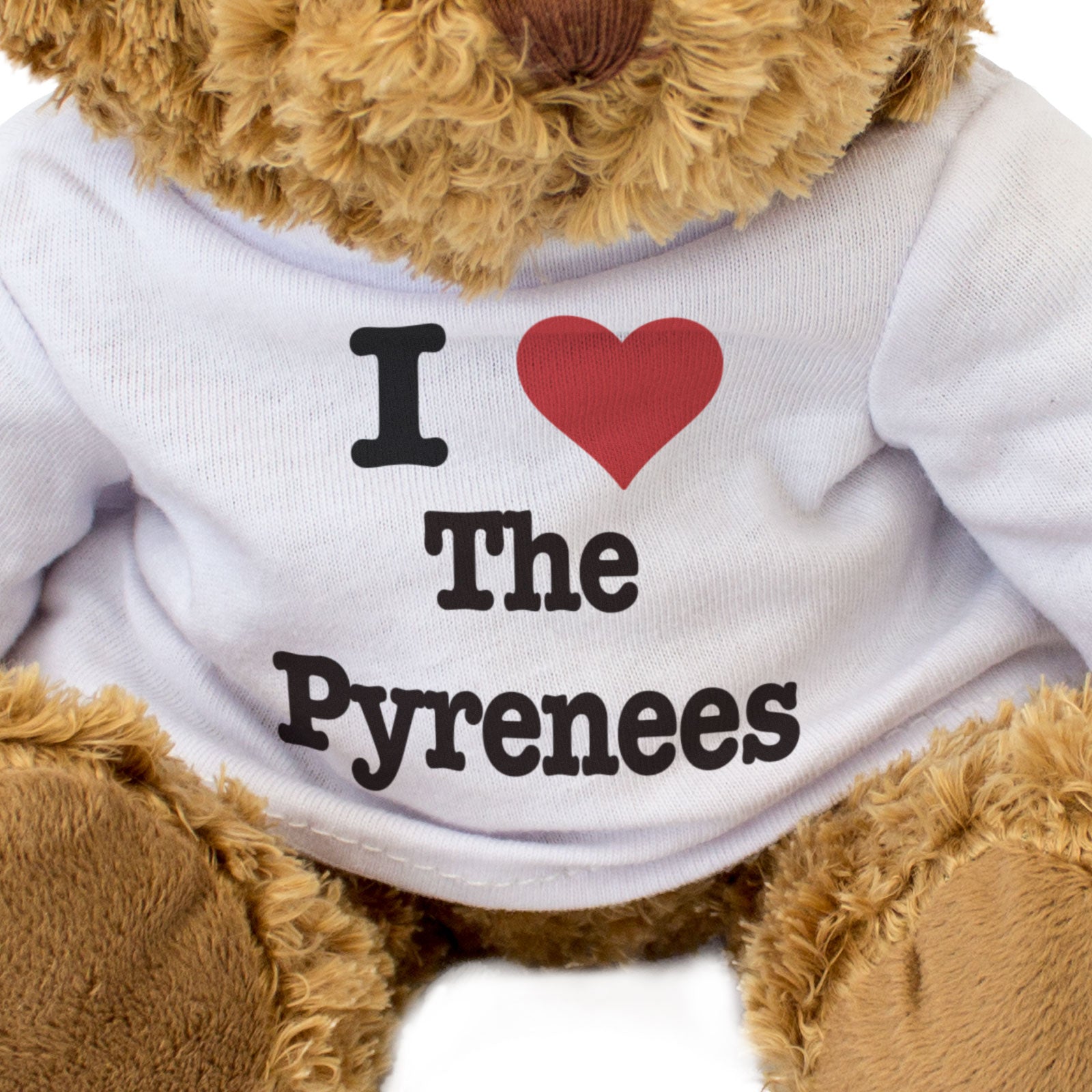 Our bear wears a white t-shirt with I Love The Pyrenees printed on it in full colour. This teddy bear makes a thoughtful and personal gift for friends and family.