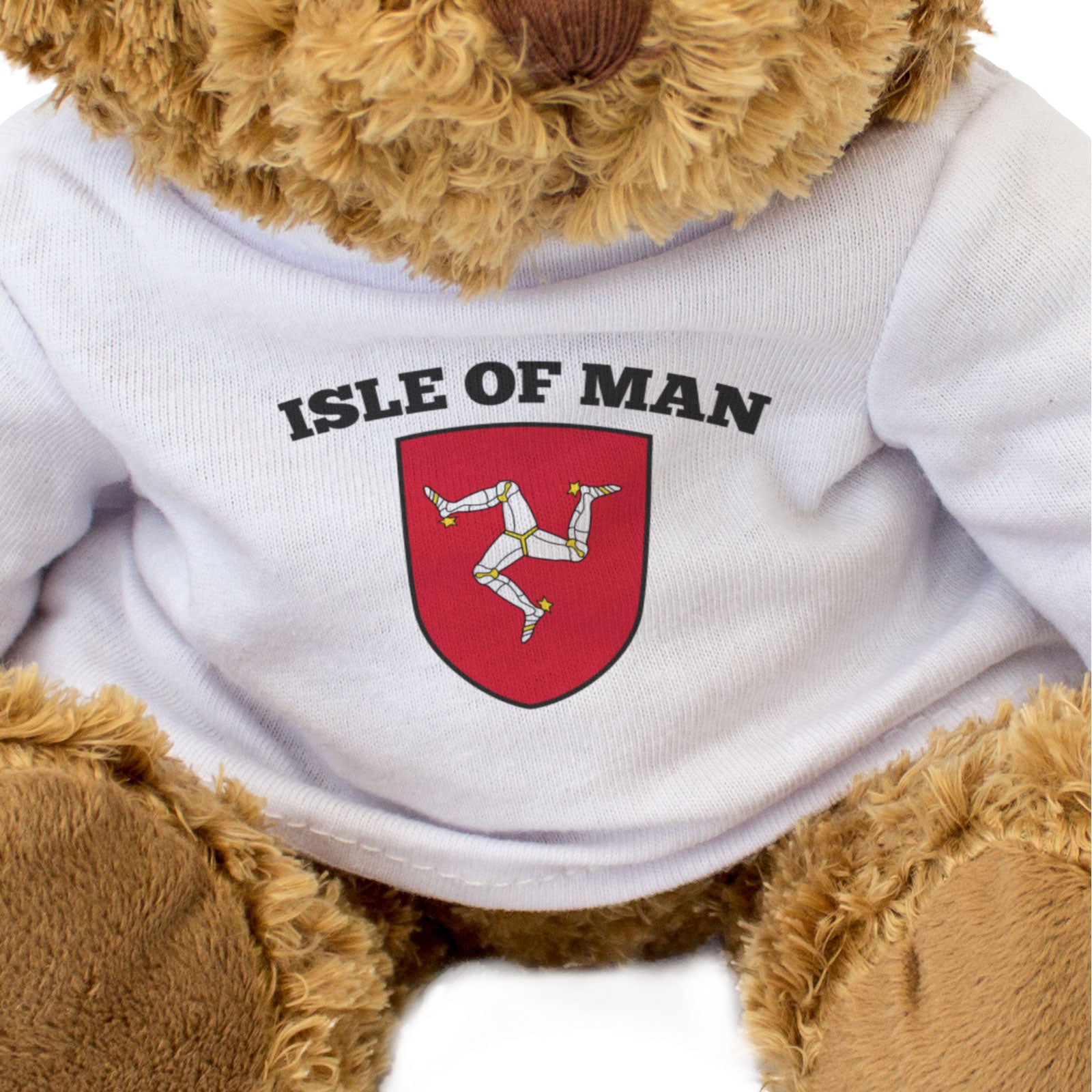 Our bear wears a white t-shirt with the flag of Isle of Man printed on it in full colour. This bear makes a thoughtful and personal gift for friends and family.