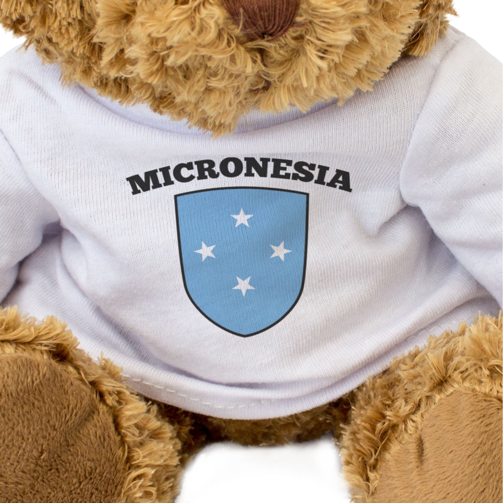 Our bear wears a white t-shirt with the flag of Micronesia printed on it in full colour. This bear makes a thoughtful and personal gift for friends and family.