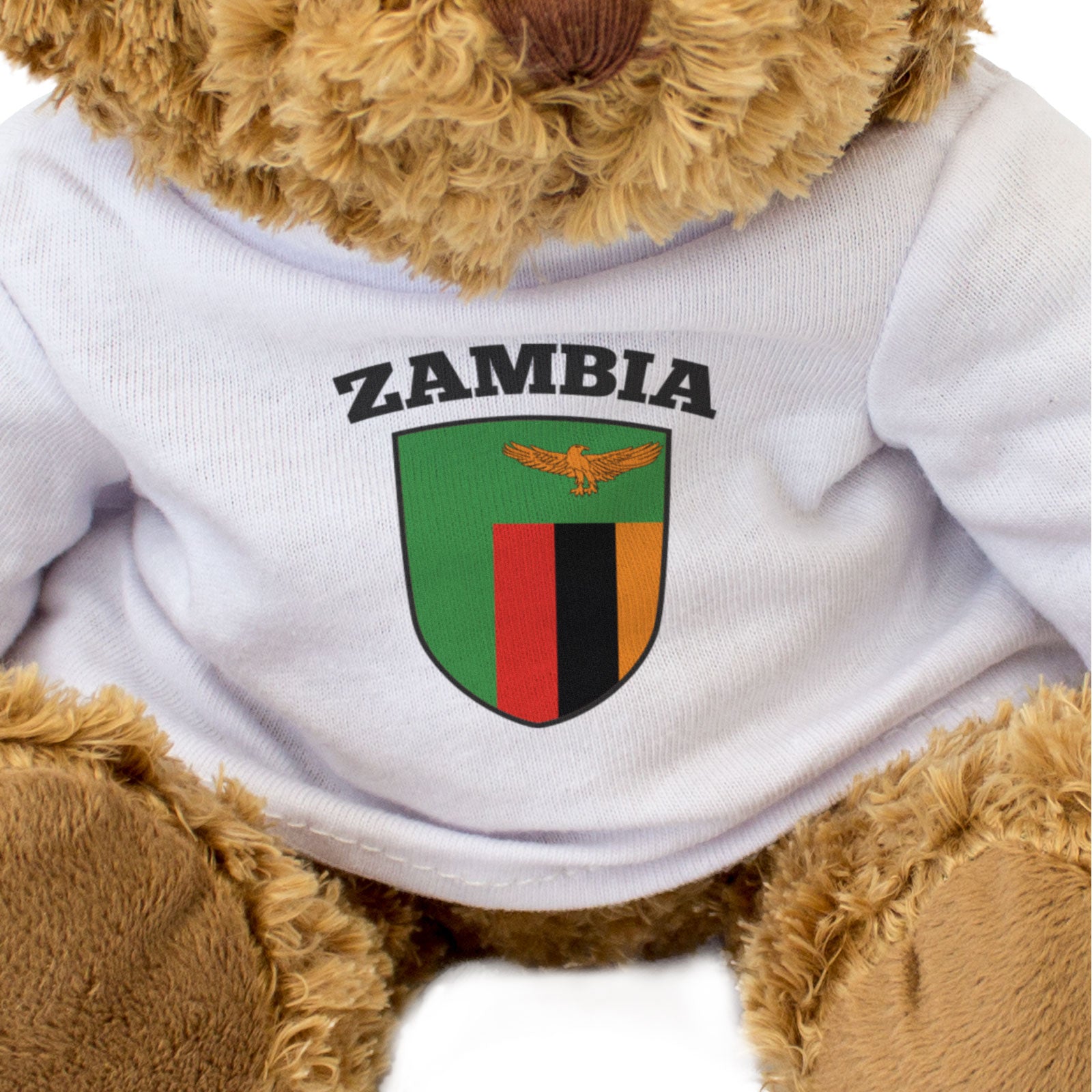 Our bear wears a white t-shirt with the flag of Zambia printed on it in full colour. This bear makes a thoughtful and personal gift for friends and family.